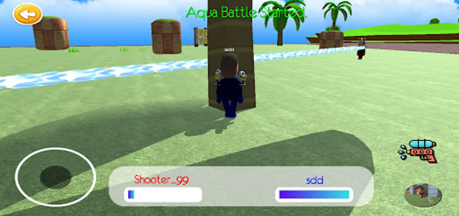 Be the king of the water shooter game, win games and challenge your friends in private games or with players around the world, hide in the game scene and dodge the shots, you can throw yourself out of the area to land again on another place in the playing area to dodge your opponent's water shots.
