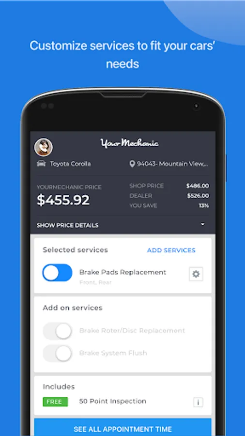 What’s more annoying than spending your day at the repair shop is the expensive bill that you have to pay for simple repairs. In the YourMechanic App, you will be able to review quotes before booking the repair. YourMechanic is also partnered with O’Reilly Auto Parts, AutoZone and Advance Auto Parts to provide quality parts for your car.