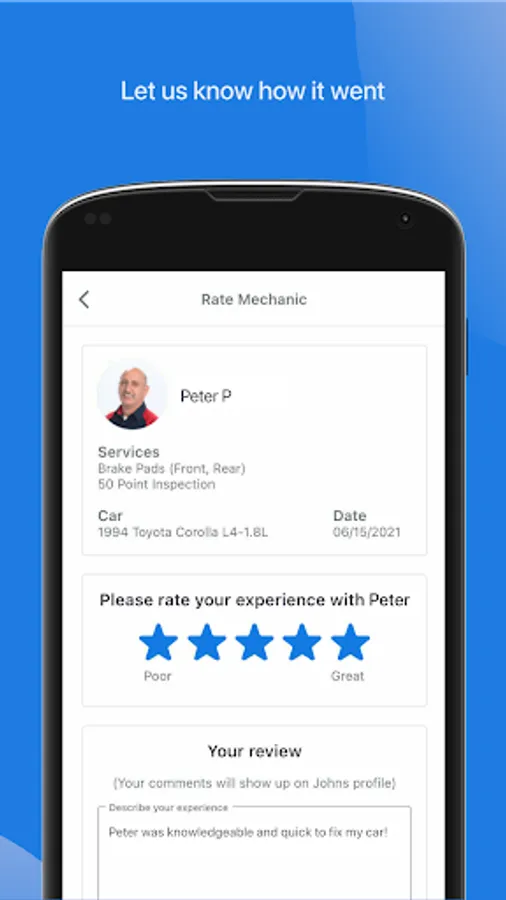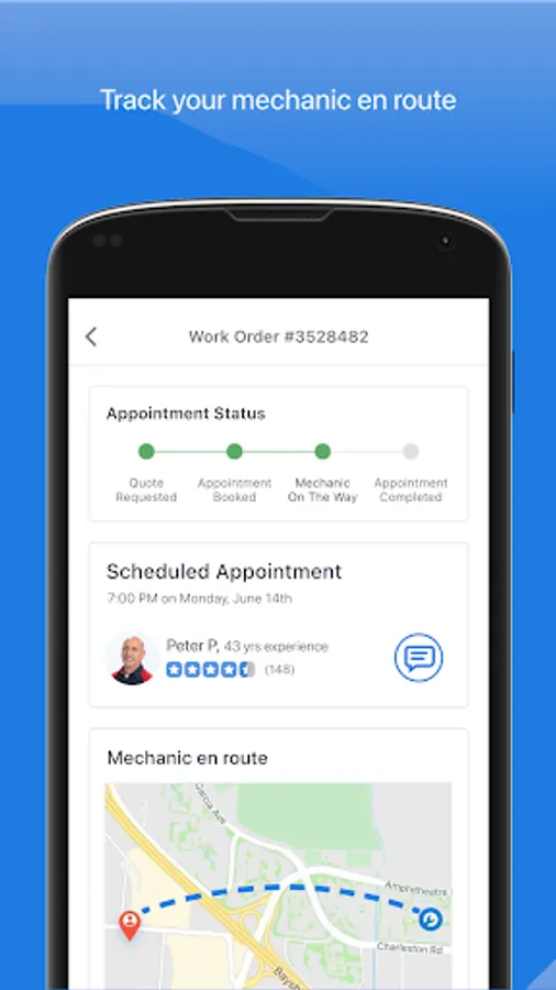 No need to wait by the door in anticipation for the mechanic’s arrival. When the mechanic is on the way to your appointment, you will be able to track the mechanic’s location in real time.