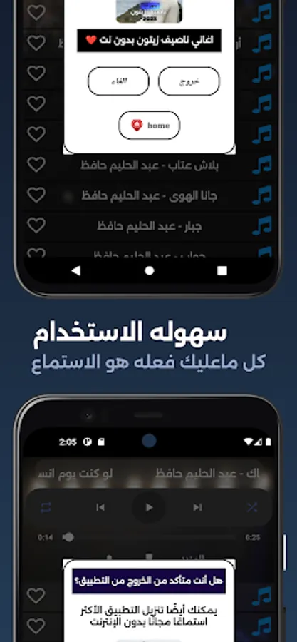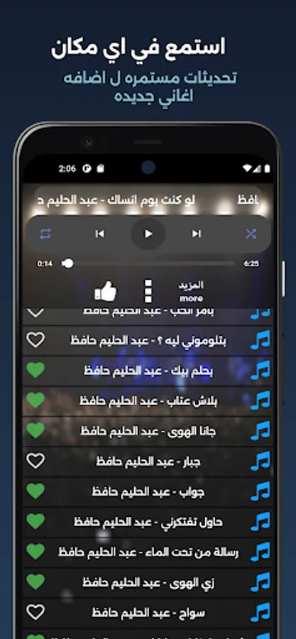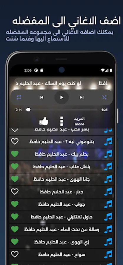 Dont hesitate to download Abdalhalim hafedh songs app without internet connection.