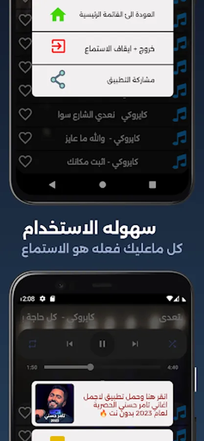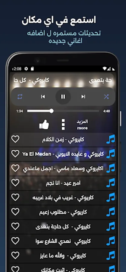 نقدم أفضل وأسهل تصميم للحصول على أسرع تجربة و الاستماع إلى الفرقه المفضله لديك كايروكي دون اتصال بالإنترنت.