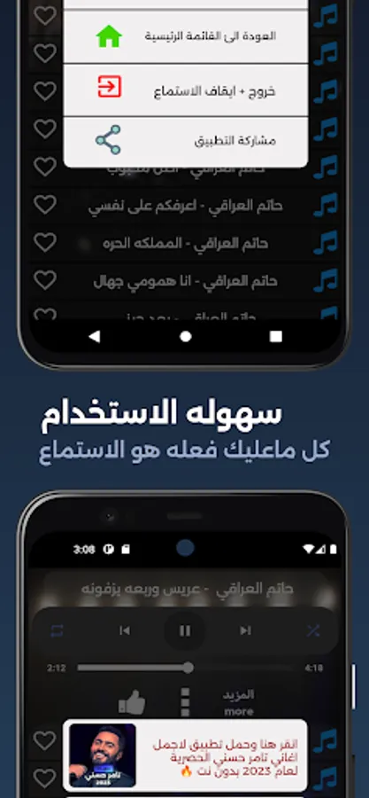 نقدم أفضل وأسهل تصميم للحصول على أسرع تجربة و الاستماع إلى المغني المفضل لديك حاتم العراقي دون اتصال بالإنترنت.