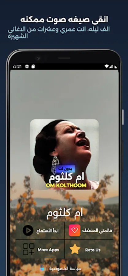نقدم أفضل وأسهل تصميم للحصول على أسرع تجربة و الاستماع إلى المغنيه المصريه المفضله لديك ام كلثوم دون اتصال بالإنترنت.