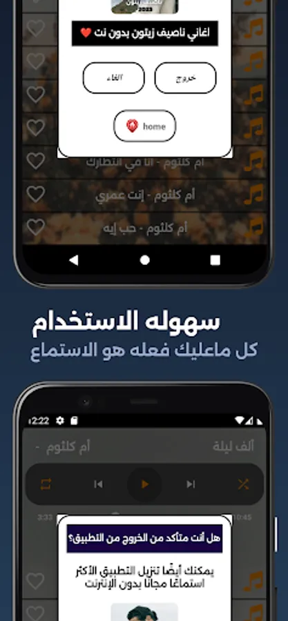 خصائص تطبيق ام كلثوم 2023 بدون نت :