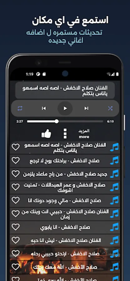 الاستماع إلى صلاح الاخفش لن يأخذ منك أي جهد ، كل ما عليك فعله هو تحميل والاستماع إلى أفضل أغاني المطربين والفنانين المفضلين لديك بنقرة واحدة.