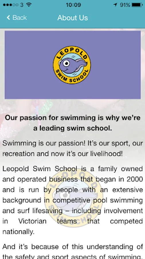 Our app offers users updated swim term information, receive push notifications at their finger-tips, the ability for users to engage with our swim school, members informing us if they can't attend a swim class and more.
