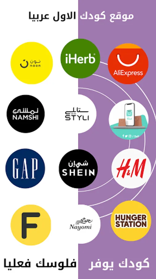 Download the app now and get notifications of the latest discount codes on your favorite online stores in Saudi Arabia, UAE, Egypt, Kuwait, Bahrain, Jordan, Oman, Qatar, Iraq and all Arab countries!
