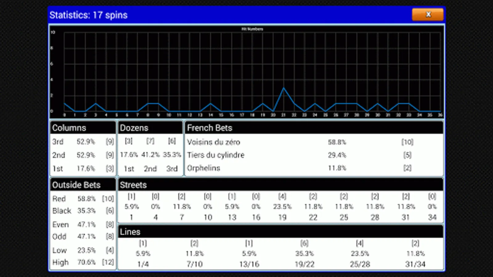 Have all useful information to gain your winnings in one SMART roulette tool! Adjust unhit notification alerts, be notified on right time and increase your chance to win. Get easily all stats and graphical overview of frequent numbers which help you choose right roulette betting strategy.