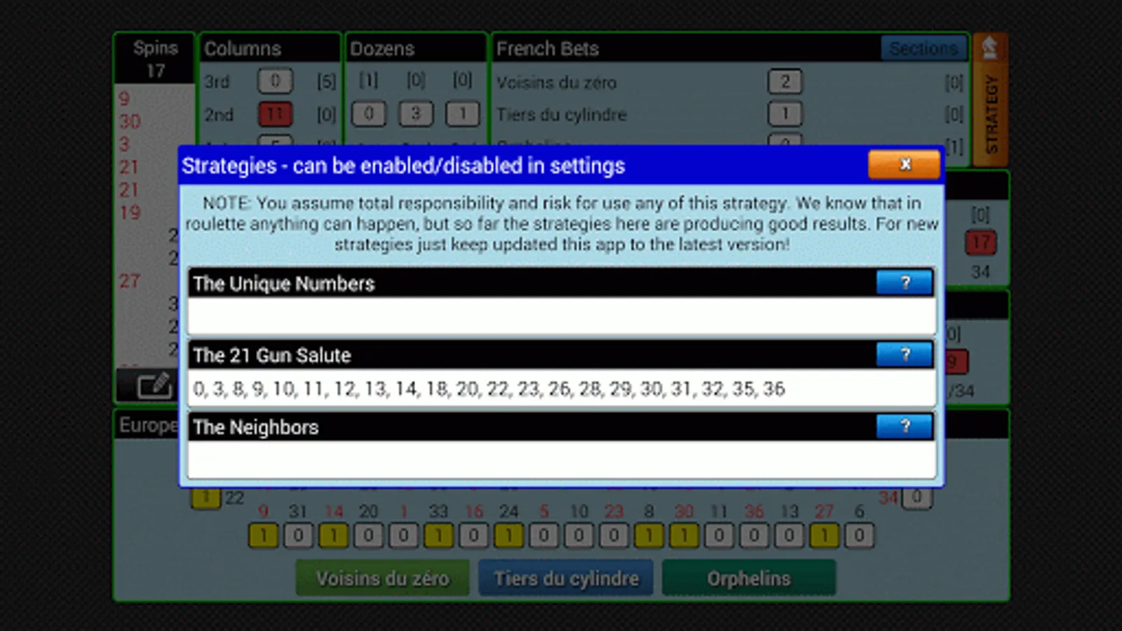 Join the thousands of players which are using proven betting strategies, Smart Roulette Tracker will calculate it for you and advice you when is the optimal time to use given strategies (each strategy is fully explained!).