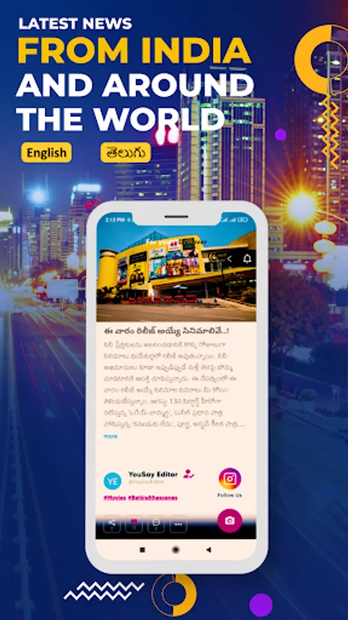 YouSay is an app for Telugu News and entertainment. Get the most up-to-date breaking news from India, Andhra Pradesh, and Telangana.
