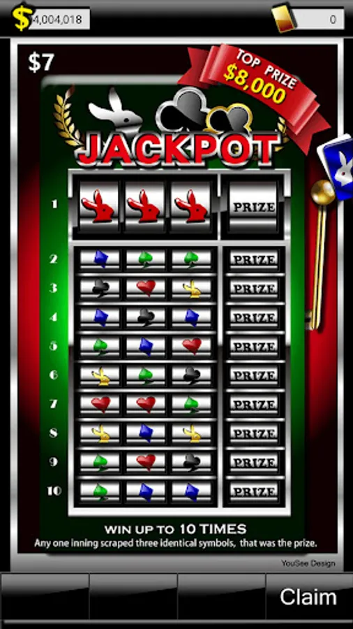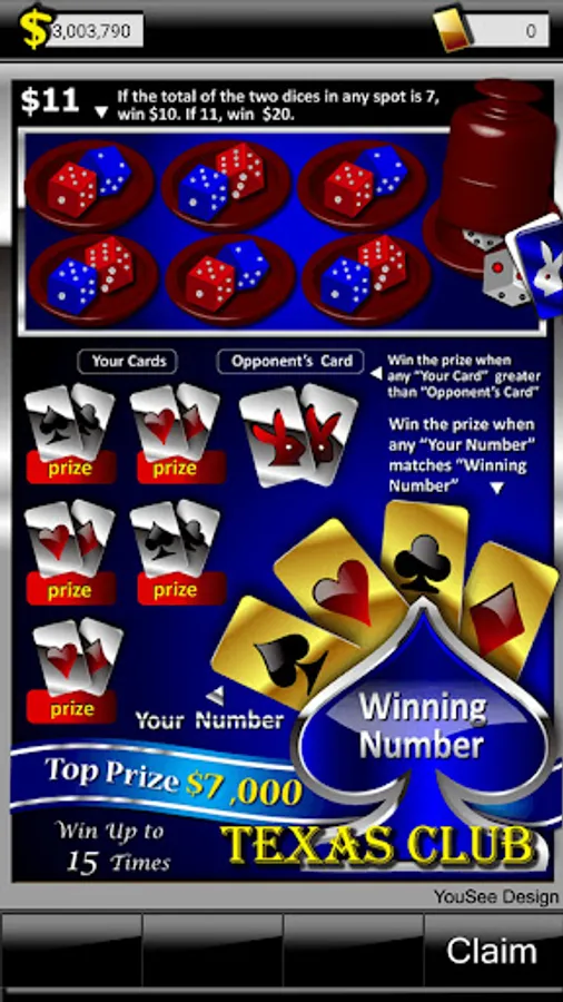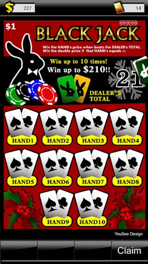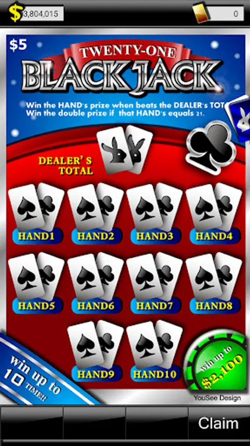 There are several popular casino style lottery tickets like Poker, Slots, Blackjack, Roulette, 777…and more.