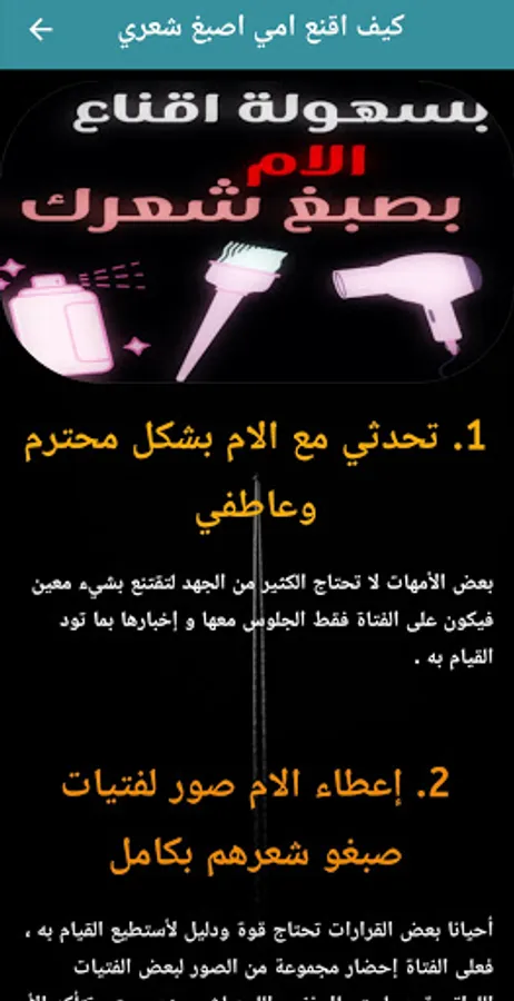 The application contains a method of persuading the mother to dye my hair, a beautifully written and easily written method 2021