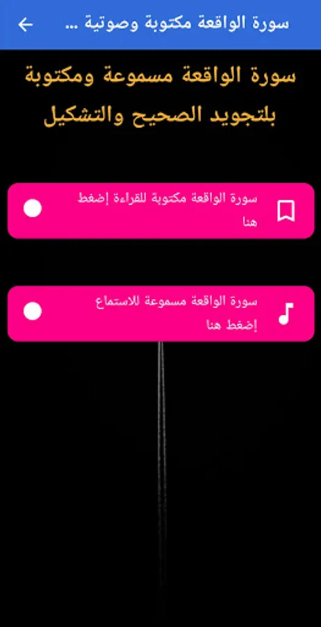 I hope that you like the application of Surat Al-Waqi’ah, written and audio, and listen to writing and audio without reminding you to rate the application for success.