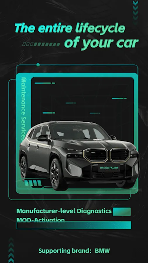 By connecting to the MotorSure OBD Tool hardware device, you will get access to OE-level diagnostics, maintenance services, and one-click hidden feature activation functions. These features will help you fully understand, customize, and enhance your driving experience.