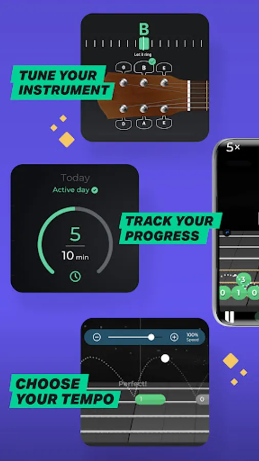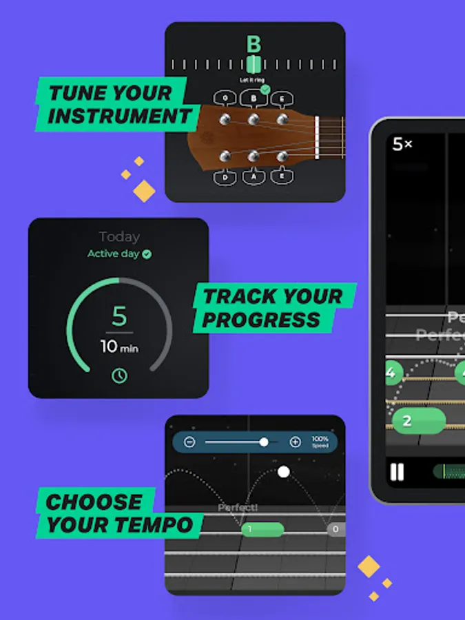 Yousician has been developed with the world’s most innovative and experienced music teachers. It is perfectly suited for self-learning or as a supplement to learning with a teacher. With step-by-step tutorials and constant feedback you can always be sure you’re playing your guitar or bass right. The microphone on your phone listens to you play and the app tells you how you're performing. It even works for singing so you’ll never be out of tune during karaoke!