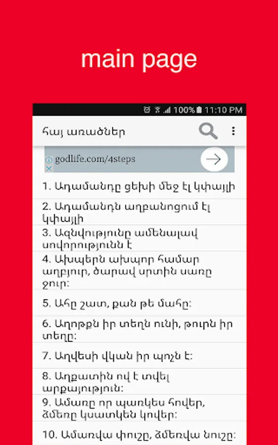 Armenian Proverbs application is specially for Armenian proverbs and it contains more than 70 proverbs, also you can send us more proverbs to add in this application