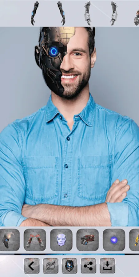 ✔ Create the best Cyborg selfie with cyborg face stickers in seconds with Cyborg Camera.
