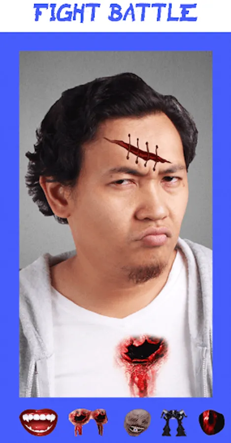 Fight Battle Photo Editor: Battle Effect prank is the best fight bandage and scary photo joke with funny injury face paint photo editor that makes me hurt photo editor. The best app for zombie yourself make yourself a zombie photo maker with free offline self harm photo editor Fake Injuries Maker.