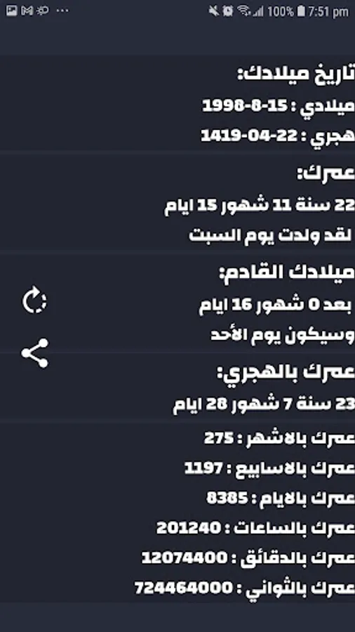 3- If you enter your Hijri date, it will give you the day of your birth in the Gregorian calendar and on what day you were born.