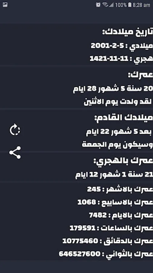 Calculate your age with Fareed, an entertaining application that adds a smile to your face, and has a lot of fun sound effects. Enjoying using it, and this feature is not found in any other similar application, one of the features of the application is calculating the age in years, months and days, as well as on any day you were born, whether Hijri or Gregorian, and you can easily know your next birthday and how much is left in days and months and on what day it will be, Calculate your age with Fred who adds to life a laugh that changes your entire day.