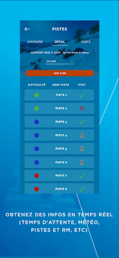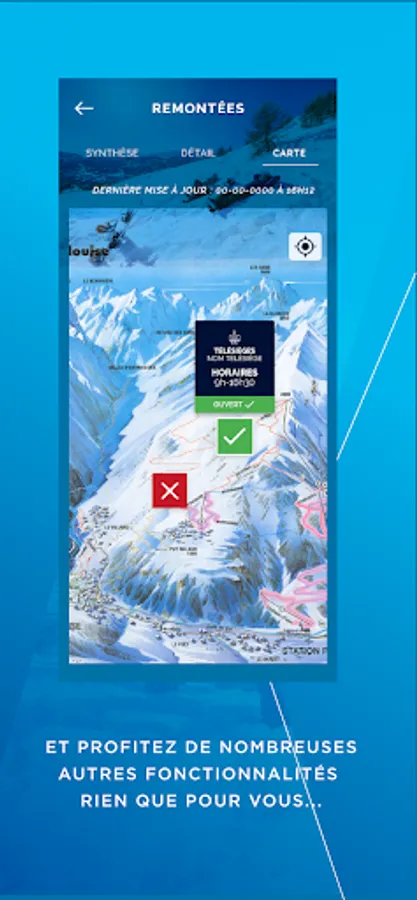 - All live information (openings of the slopes, weather forecast, snow cover, avalanche risk, webcams, etc.)