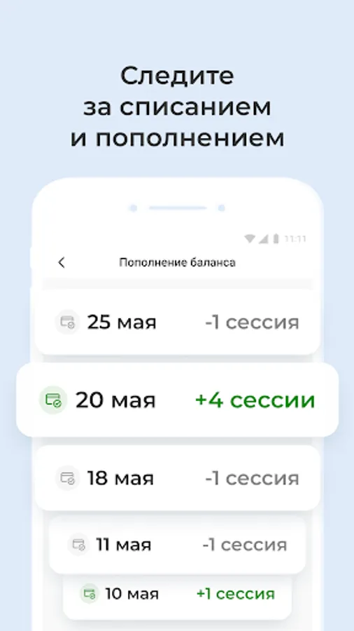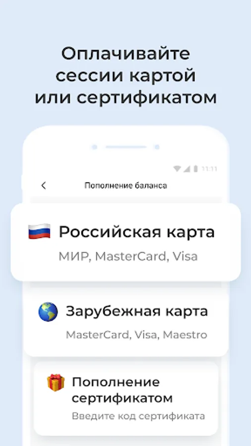 In it, you can view and replenish your balance with a card or certificate, as well as view the history of debits and replenishments.