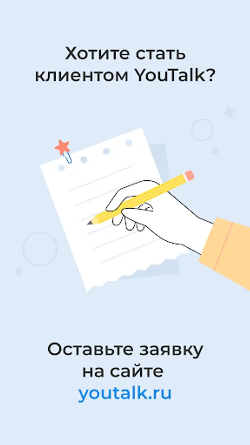 To become a YouTalk client, leave a request on our website: https://youtalk.ru/