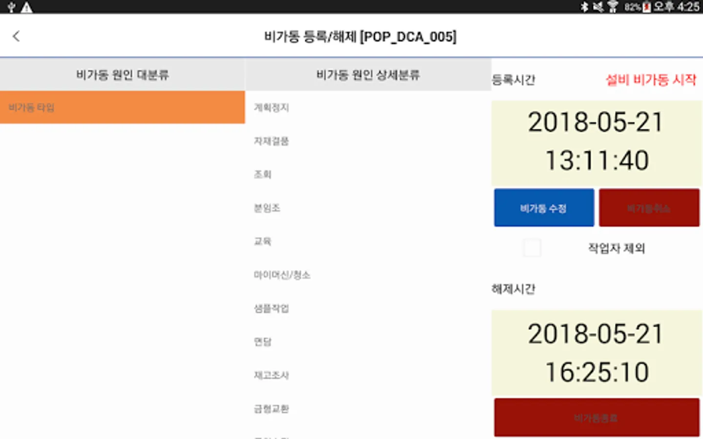 Arguments registration, mold mounting / Heze, performance and barcode registration issued, downtime management, materials dispensed registration process defect management and test management process
