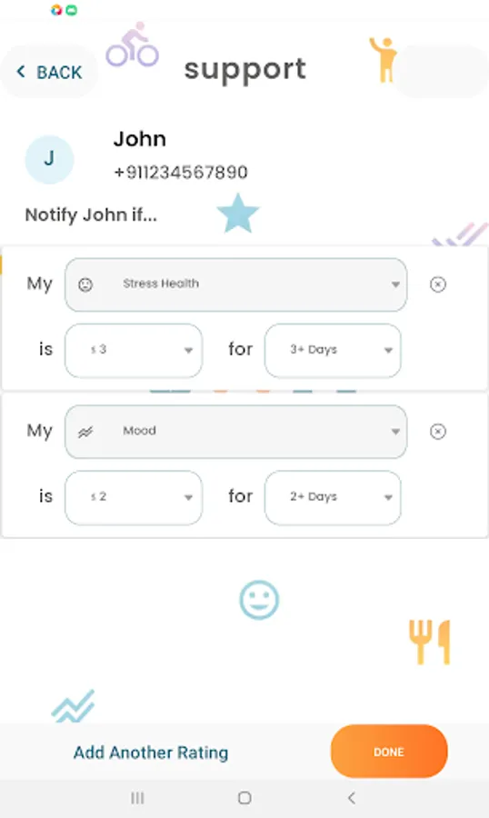 'OneYou' helps you track your mental health and well-being. With 'OneYou', you can track your Stress health, Mood, Physical Activity, Eating Habits, etc. You can also add your support contacts who could get notified if your mental health status falls below a particular level. 'OneYou' is a safe and confidential space for you to track your mental health. Your data is stored securely and you can choose to share it with your therapist or doctor if YOU wish.
