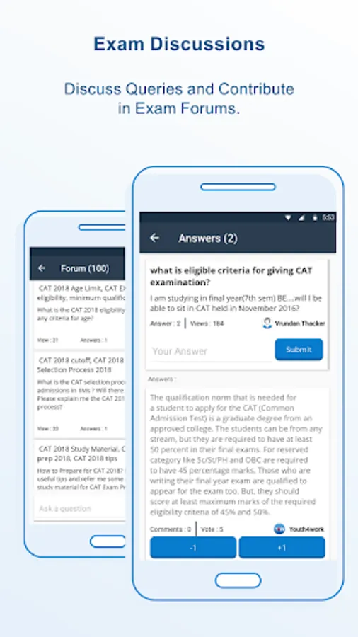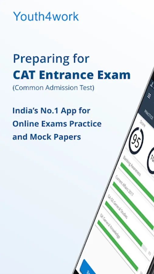 CAT Entrance Exam perpetration app 2019 is powered by Youth4work (a leading portal for competitive exams preparation). Common Admission Test (CAT) is an entrance examination pre-requisite for admission in most of the business schools in India including the premier ones like Indian Institute of Management (IIMs), Indian Institutes of Technology (IITs), Indian Institute of Science (IISc), National Institutes of Technology (NITs), Faculty of Management Studies (FMS) etc. Common Admission Test is conducted annually by IIMs and this app helps to prepare better for the entrance exam with plenty of mock tests and enabling aspirants to discuss placement prep tips through discussion forums.