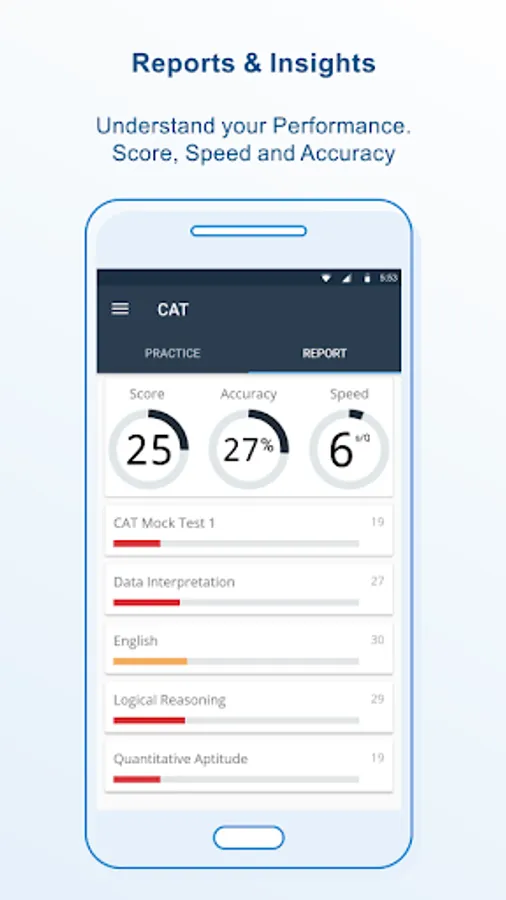 This CAT MBA app measures the Quantitative Ability (QA), Verbal Ability (VA) and Reading Comprehension (RC), Data Interpretation (DI) and Logical Reasoning (LR) prowess of the aspirants, similar to the actual Common Admission Test. The CAT Question paper app allows taking Mock tests / admission test / entry test combining all the sections or Practice Tests for a particular section. Easy to use CAT MBA also provides instant reports and lets the test taker review all attempted questions so that they can improve their performance before appearing in the act online CAT enterance Exam.