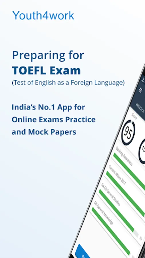 It is powered by Youth4work - a leading online exam portal for TOEFL practice test and learning English. TOEFL test is a standardized online exam to assess the English language proficiency of non native speakers for enrollment in English Speaking Universities and English study.