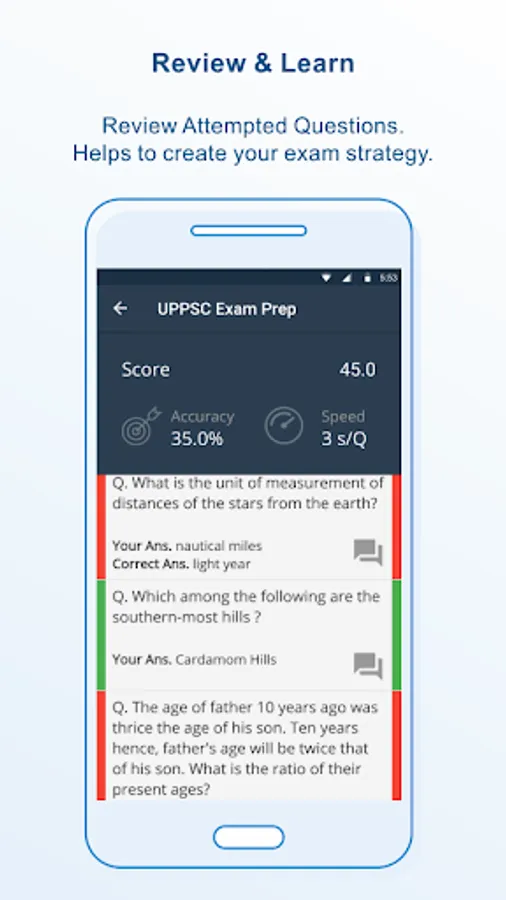 5. Review all attempted questions, see the correct answer, and read or write a solution for any question.