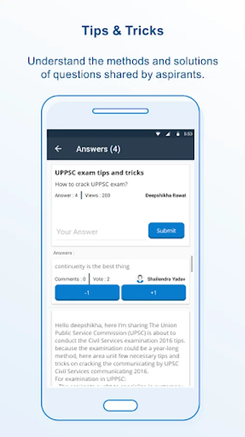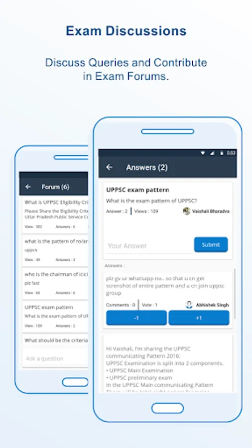 The mock tests and practice papers in the UPPSC UPPCS Exam Prep App emulates a similar exam pattern and question difficulty level to the UP Civil Services Preliminary Examination. The app covers the full syllabus of the recruitment examination with a focus on each and every topic so that the candidates never miss a single important question to practice. Also, the app powers the aspirants to interact with each other and also with experts through the forum section, enabling them to discuss preparation strategies, tips and tricks, important questions and their solutions, exam notification for result, admit card, and interview experience.