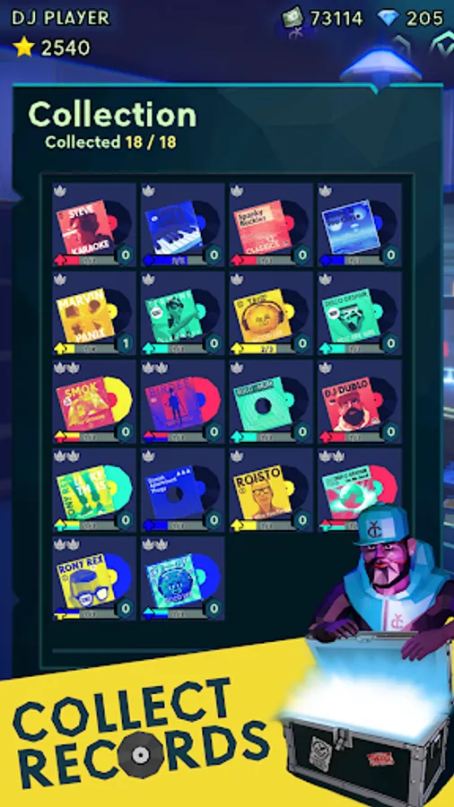 You can collect and upgrade dozens of records featuring electronic dance music from record labels and artists you know and love. You can get into the mix and fill the virtual dancefloor in gameplay that combines strategic music selection to rhythm action.Play gigs, earn money, get famous and play even bigger clubs! Challenge other DJs in leaderboards.