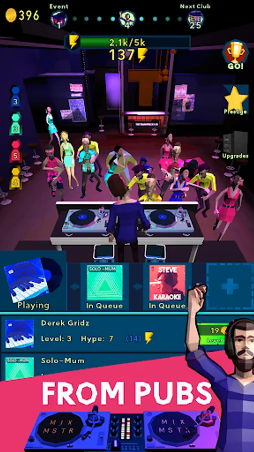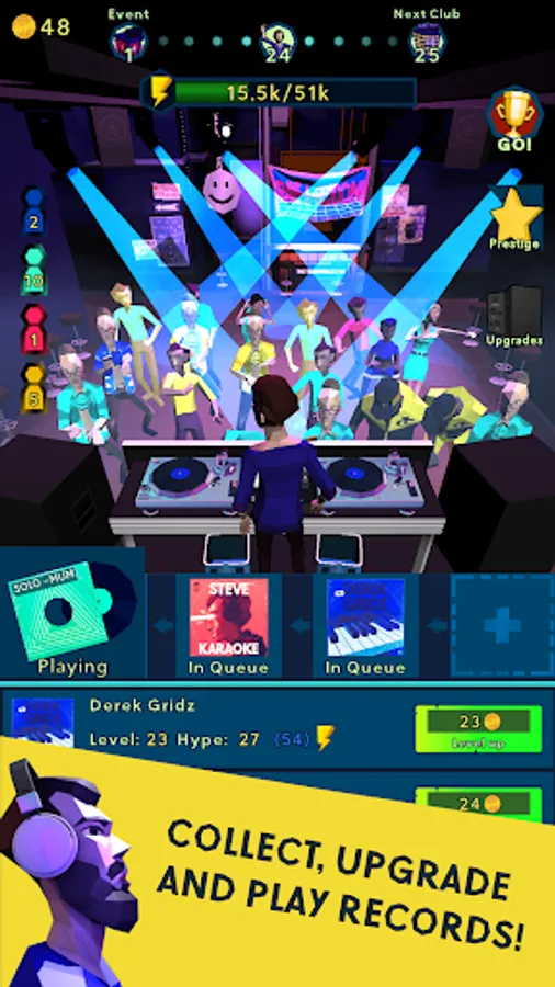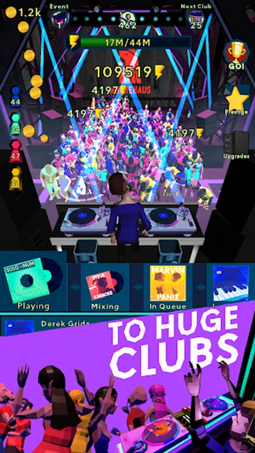 Collect records, build a perfect set, upgrade your club and progress your way towards bigger and bigger stages - and reach the ultimate RAVE-A-GEDDON!