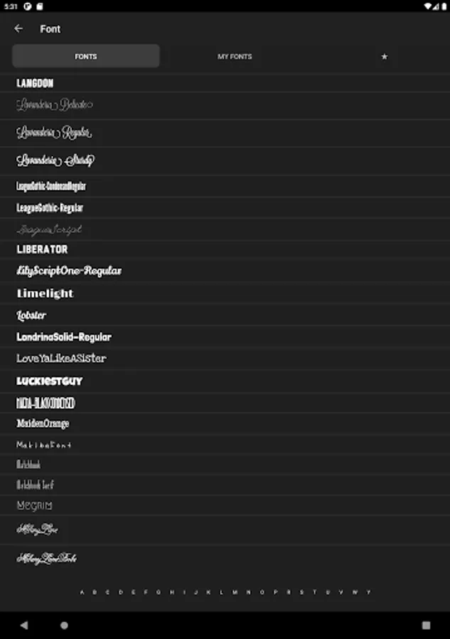 2. Open font file (***zip, ***ttf, ***.otf) in Phonto.