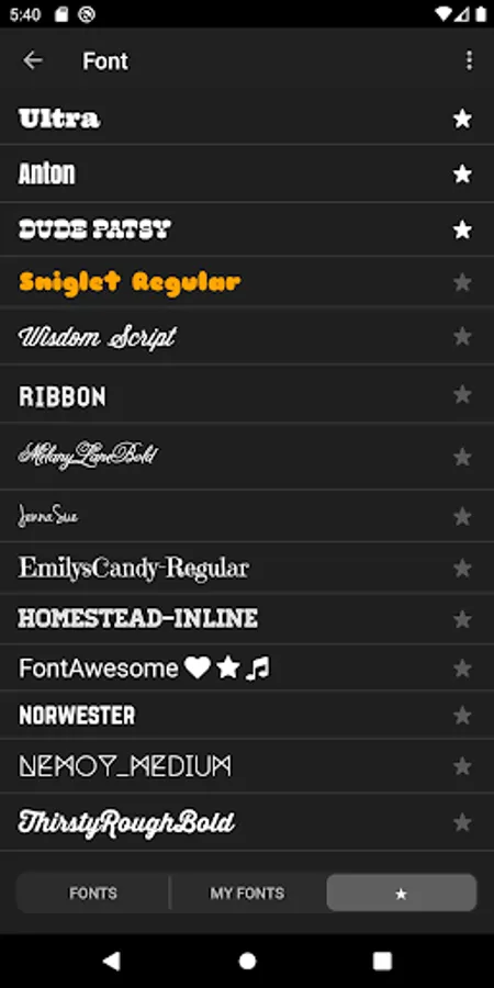 2. Open font file (***zip, ***ttf, ***.otf) in Vont.