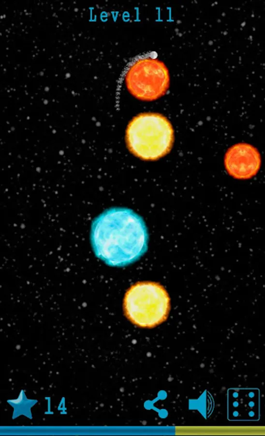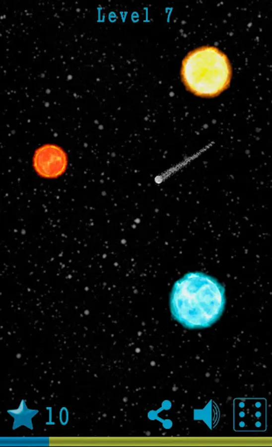 Your goal is to guide a comet through the universe full of hot stars. Avoid hitting stars - keep your comet away from them as long as you can.