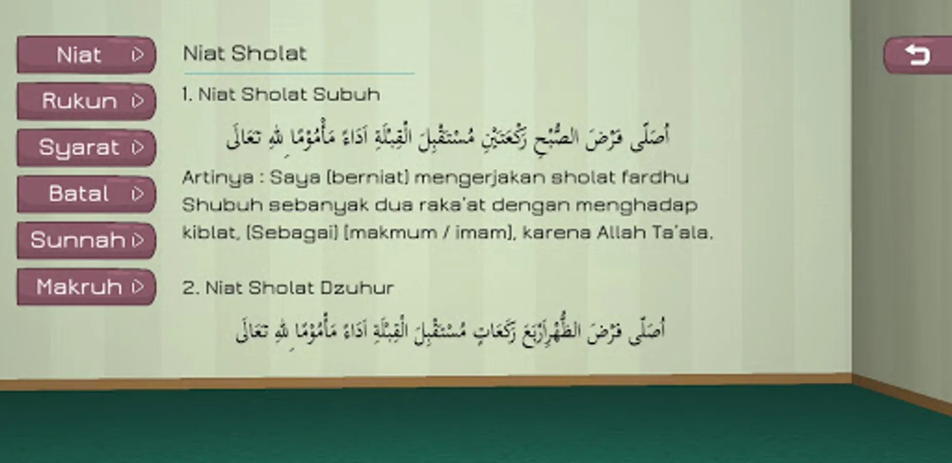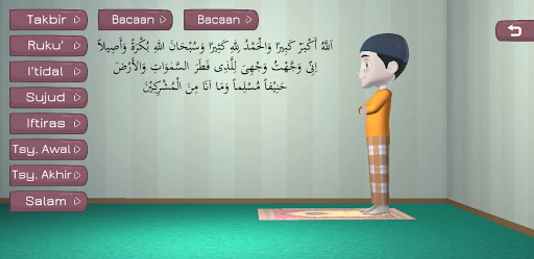 Learning application about complete prayer guides equipped with audio recitation of prayers and 3D animation that will display prayer movements. so that users will find it easier to understand and practice it.