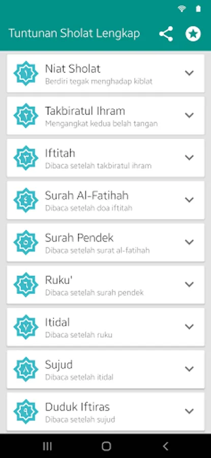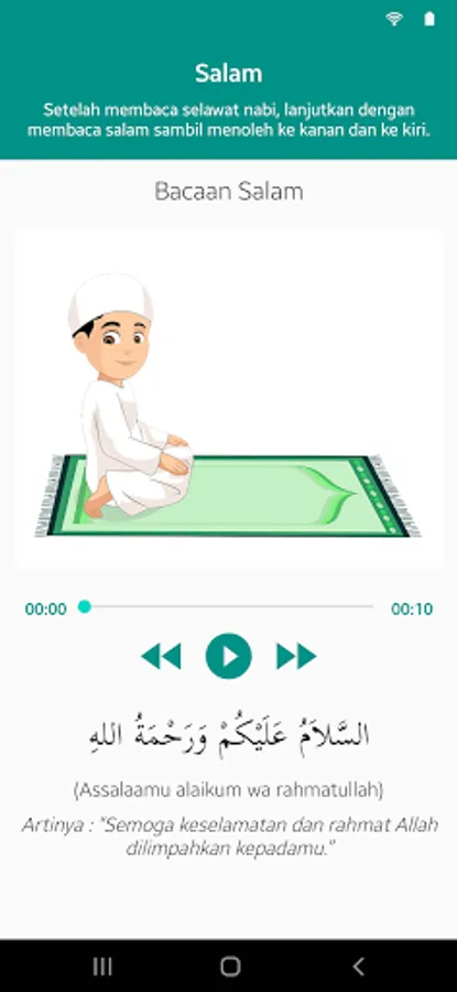 Aplikasi tuntunan sholat fardhu dan sunnah lengkap berbasis multimedia yang dilengkapi dengan audio bacaan sholat serta gambar gerakan sholat yang mempermudah pengguna untuk mempraktekannya, beserta dilengkapi dengan dzikir setelah sholat, doa setelah sholat, & audio mp3 (full offline). berisi tuntunan dan tata cara sholat secara lengkap, mulai dari cara bersuci (wudhu & tayamum), cara melaksanakan sholat (gerakan dan bacaan-nya), hingga wirid & doa sesudah shalat. juga terdapat hukum hukum seputar sholat, seperti syarat sah sholat, rukun sholat, sunnah sholat, yang membatalkan sholat, dan banyak lagi pembahasan seputar sholat. Aplikasi sepenuhnya offline dan tidak membutuhkan koneksi internet.