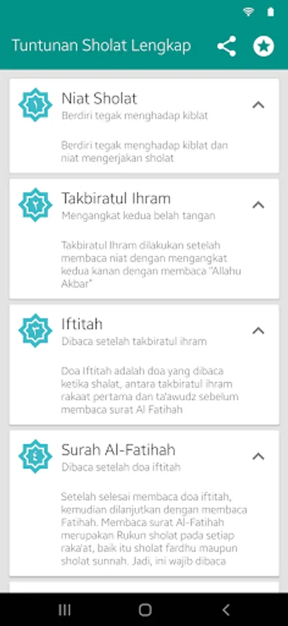 Aplikasi tuntunan sholat lengkap ini dibuat untuk memudahkan dalam menghafal bacaan sholat wajib maupun sholat sunnah serta memberikan edukasi pembelajaran tentang sholat yang dilengkapi dengan penjelasan serta gerakan sholat. Terutama bagi yang baru dan sedang belajar sholat wajib dan sunnah. Aplikasi ini juga dilengkapi dengan bacaan arab, dan bagi yang ingin mendalami bacaan bacaan sholat wajib dan sunnah kami juga sertakan terjemahnya.