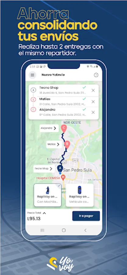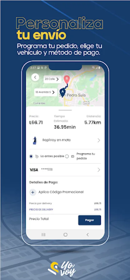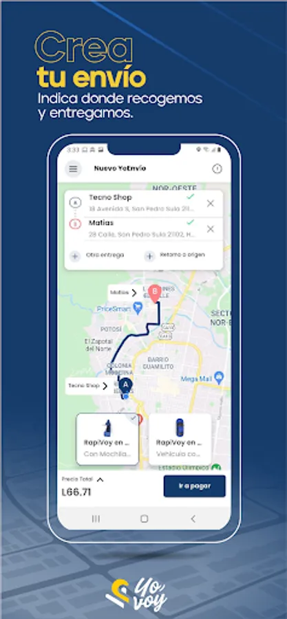 YoVoy es la app que conecta decenas de negocios a sus clientes con envíos rápidos, precios justos y seguimiento en tiempo real, con tecnología diseñada para ofrecer un servicio de última milla de primer nivel por medio de nuestra red de repartidores. Envíos para restaurantes, e-commerce o tiendas en línea, documentos, paquetería y/o tiendas de cualquier rubro.