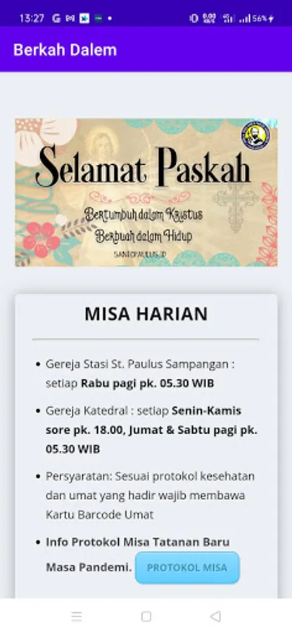 Application to access the santopaulus.id website which is the website of the Stasi St. Church. Saint Paulus, Sampangan under the Church of the Blessed Virgin Mary Queen of the Holy Rosary, Randusari, Cathedral, Semarang.
