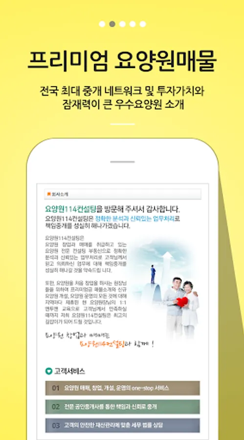 Nursing home 114 Consulting provides the nation's largest brokerage network and provides services that allow you to easily search for premium properties for nursing homes by type and region. Solve a new nursing home start-up, design, construction, and interior consultation all at once~