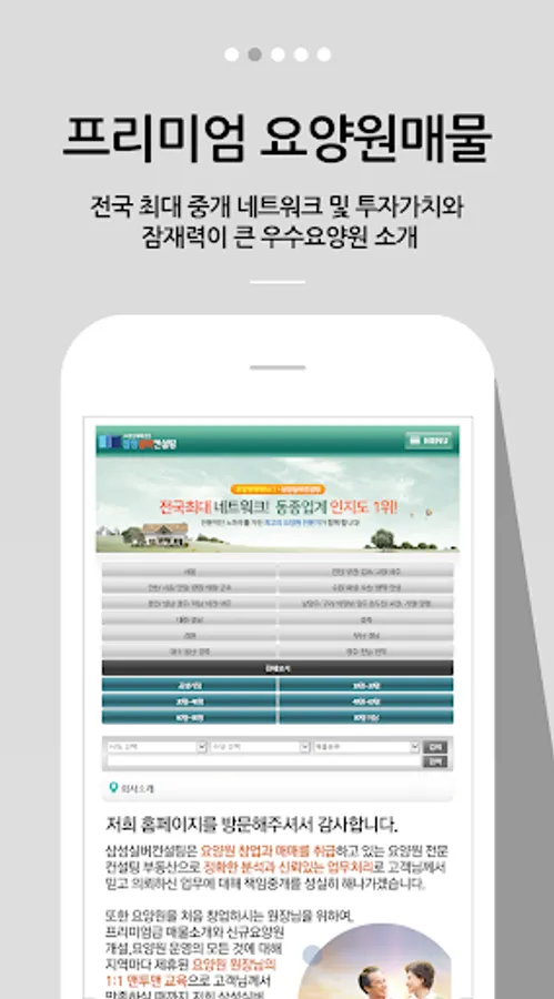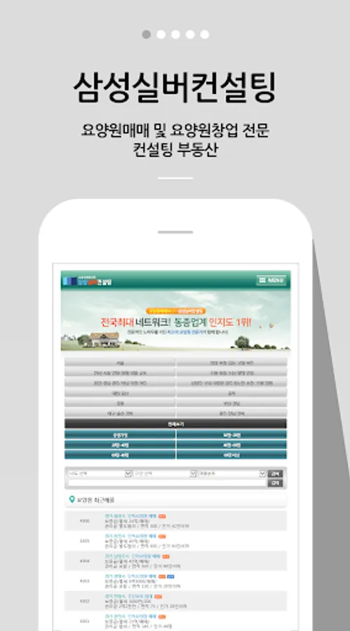 Samsung Silver Consulting provides the nation's largest brokerage network and provides a service that allows you to easily find information on premium properties for certified nursing homes by type and region. Solve a new nursing home start-up, design, construction, and interior consultation all at once~