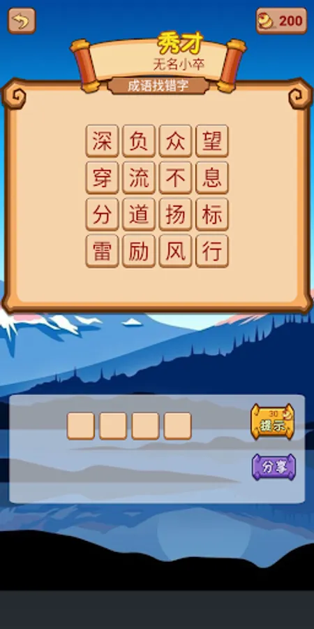 This is a casual Chinese idiom game that integrates idiom guessing, idiom crossword, idiom solitaire, typo finding, quiz selection and many other playing methods.