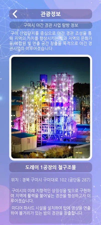 It provides information on Gumi City's industrial heritage tourism and basic information on night scenery development projects.