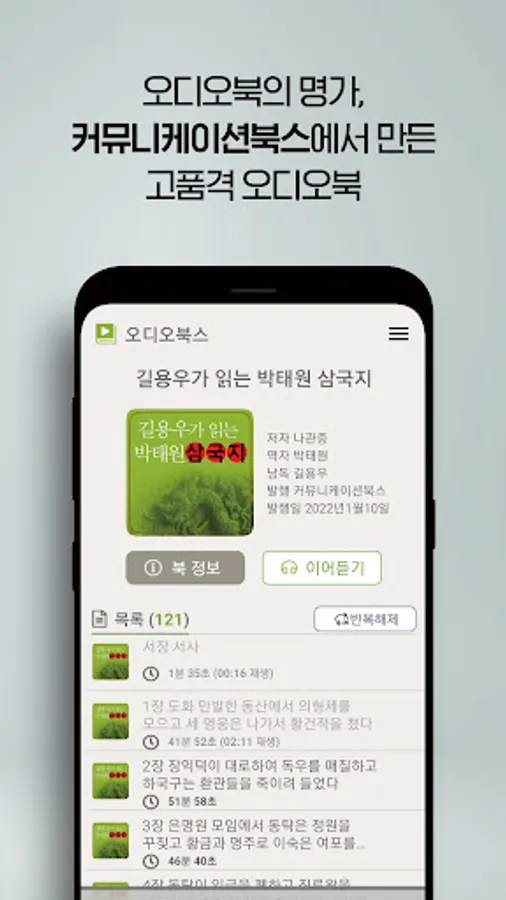 Communication Books' luxury audiobook is a modern version of the biography that arouses the reader's imagination, and the reader's voice immersion is outstanding. Experience the vitality as if the voice of actor Gil Yong-woo, who appeared in various historical dramas, or the voice of monk Beop, who makes him reflect on his life, puts readers in front of the main character in the book.
