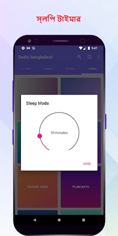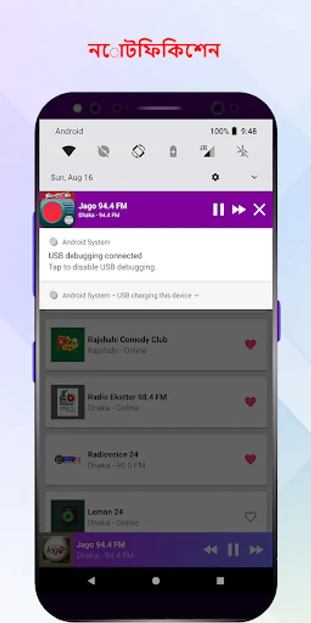 📻 Background Playback and Sleep Timer: You can listen to your favorite programs and songs while doing other things or doing nothing at all. It will continue to play even when you turn off the screen. You can use this feature to your benefit when you are travelling, walking, or doing other activities when you want to listen to radio with headphones. This Bangla Radio App (সব বাাংলা রেডিও সফটওয়্যাে) also has sleep timer feature that will enable you to fall asleep without concern listening to your favorite radio programs. It will automatically shut down when the time is over.